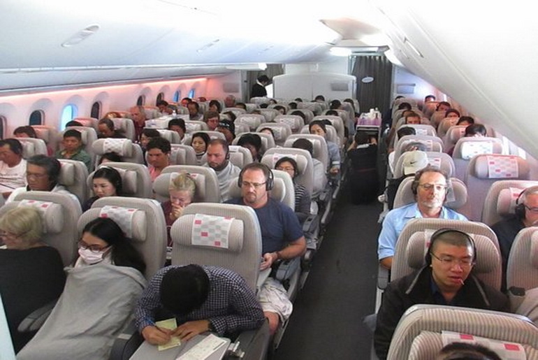 The full passenger plane is cruising at 35,000 feet while most passengers are dozing.