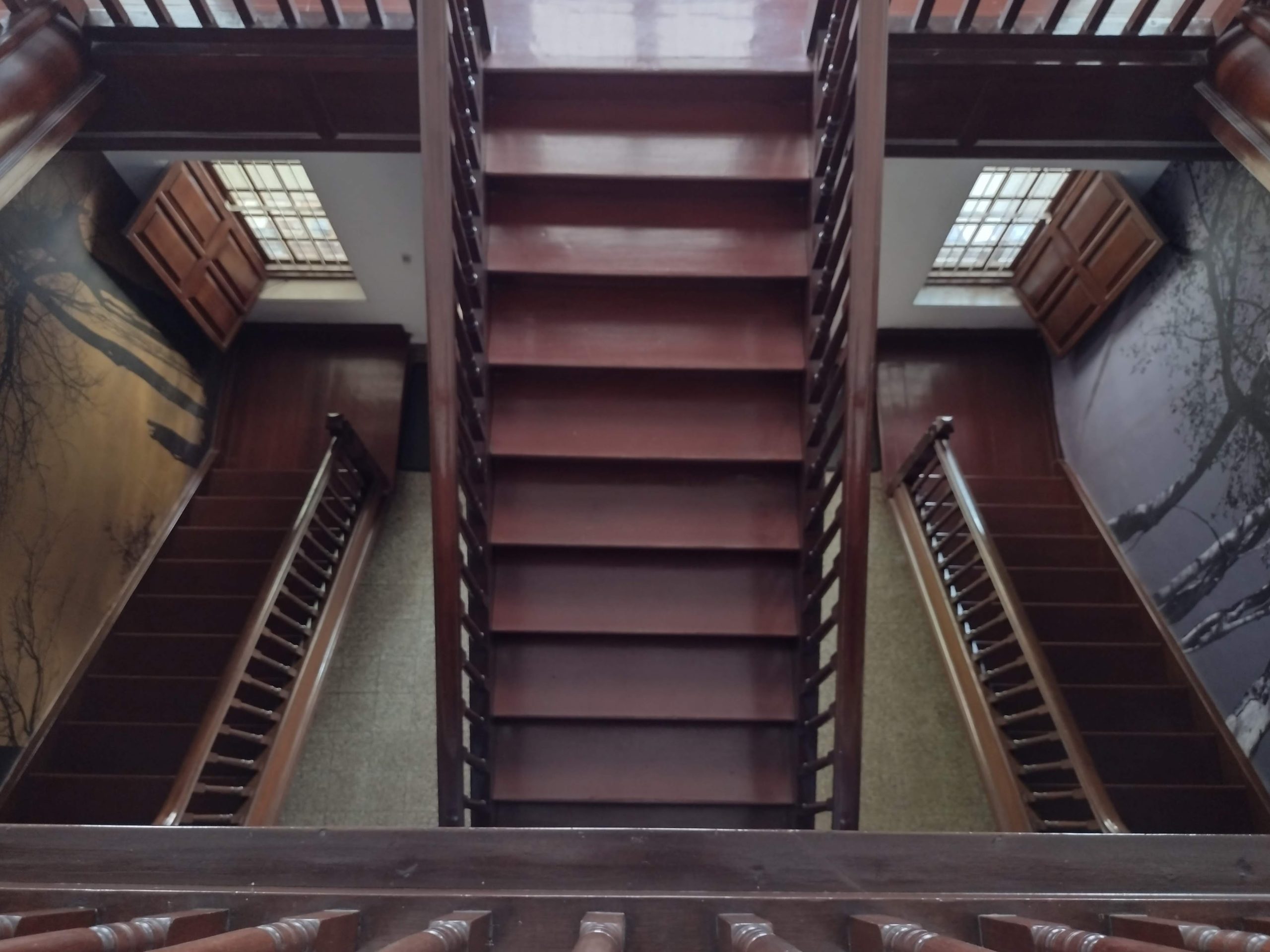 The interior of Vasanta Vihar. Stairs leading to the library.