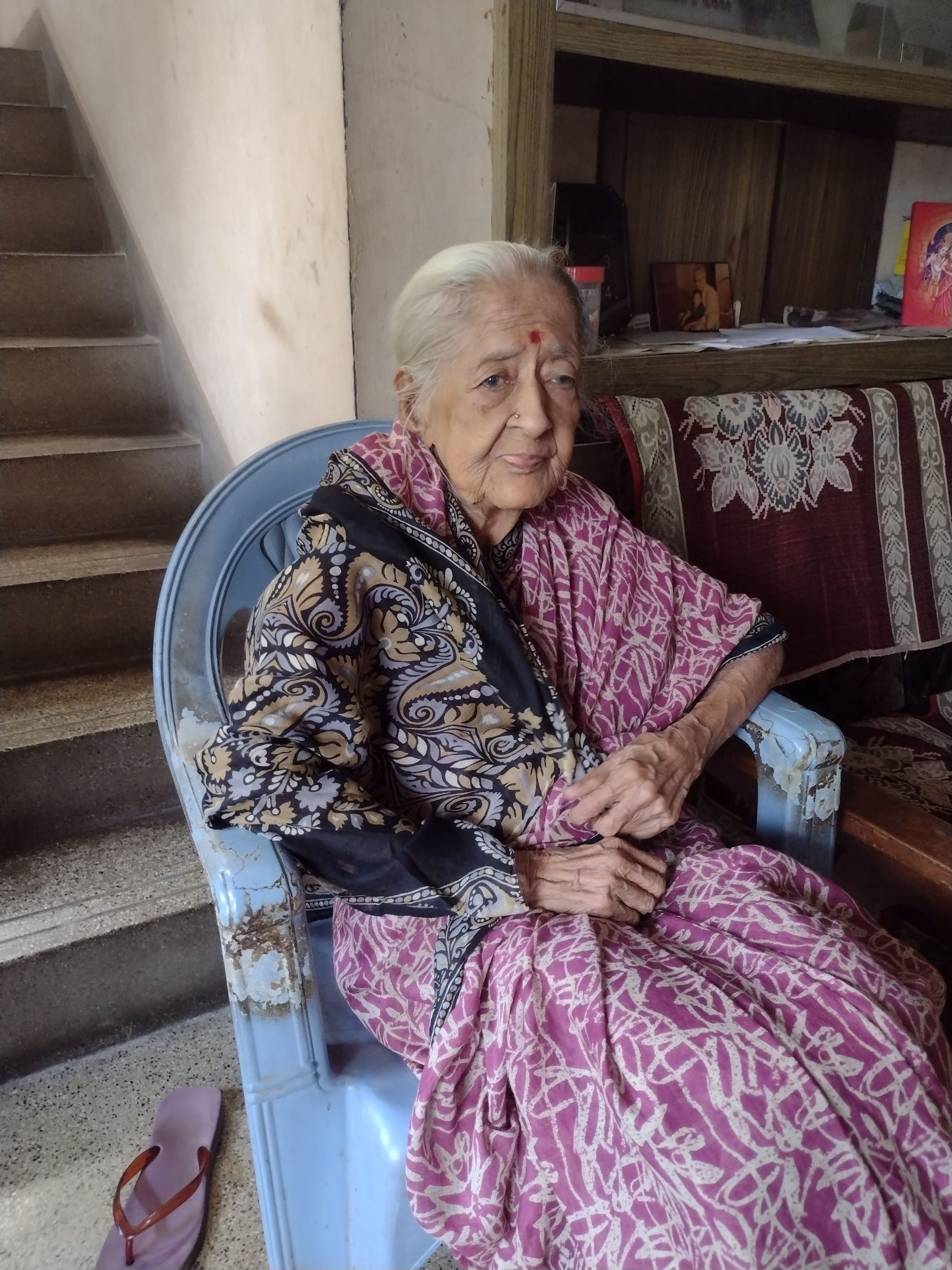 Her son had finally persuaded her to come and live with him in Bombay. She was leaving imminently. We were so lucky to catch her. After we left, we heard someone running after us and calling out; she had sent her caregiver to give us prasad.